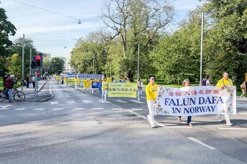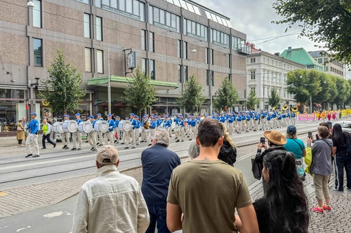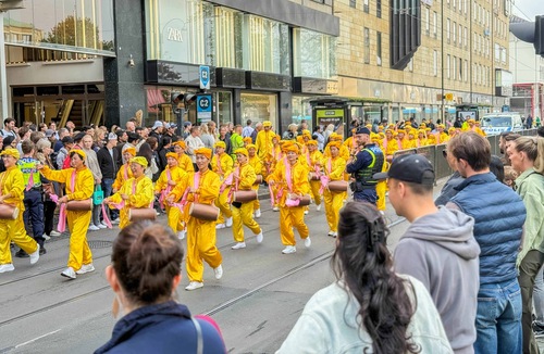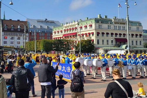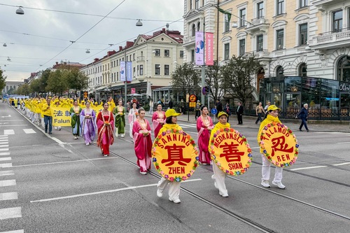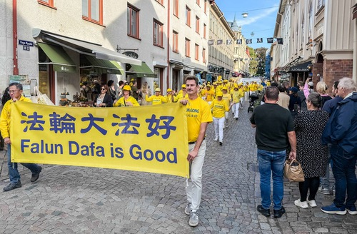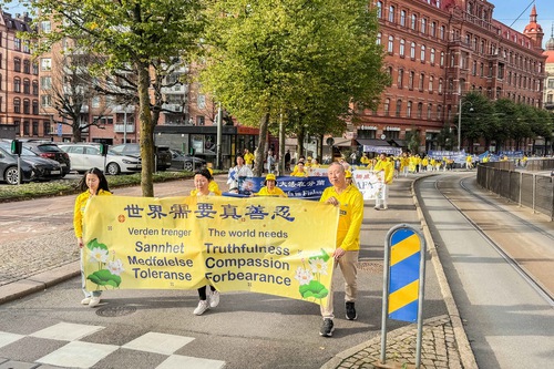 फालुन दाफा अभ्यासियों ने 20 सितंबर 2025 की सुबह गोथेनबर्ग में परेड की।