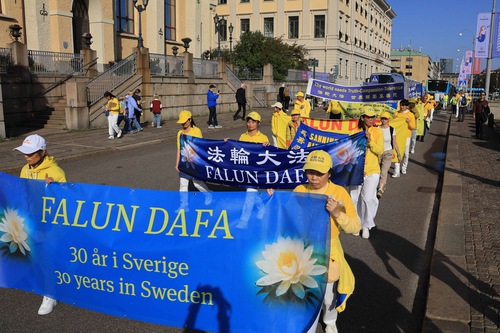 (Minghui.org) 2025 नॉर्डिक फालुन दाफा अनुभव-साझाकरण सम्मेलन से एक दिन पहले , दाफा अभ्यासियों ने 20 सितंबर को स्वीडन के गोथेनबर्ग में दो परेड आयोजित कीं, जो मास्टर ली होंगज़ी द्वारा यूरोप में फालुन दाफा के आगमन की 30वीं वर्षगांठ का जश्न मनाने के लिए आयोजित की गईं। मास्टर ली को 1995 में फालुन दाफा पर दो सेमिनार देने के लिए यूरोप आमंत्रित किया गया था, एक फ्रांस में और दूसरा स्वीडन में, जिसके बाद गोथेनबर्ग में सात दिवसीय व्याख्यान श्रृंखला आयोजित की गई थी। तब से, बढ़ती संख्या में यूरोपीय लोग फालुन दाफा का अभ्यास कर रहे हैं।