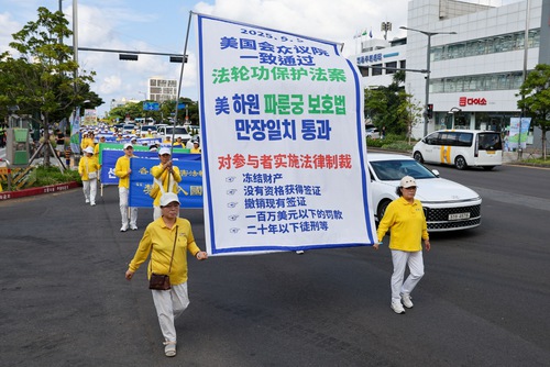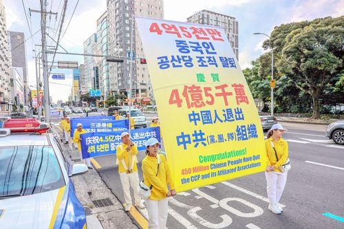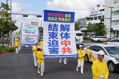 (Minghui.org) चीनी कम्युनिस्ट पार्टी (सीसीपी) और उसके संबद्ध संगठनों से अलग हुए 450 मिलियन चीनियों को बधाई देने के लिए 21 और 22 सितंबर, 2025 को दक्षिण कोरिया के जेजू द्वीप पर एक परेड आयोजित की गई। जेजू द्वीप चीनी पर्यटकों के लिए एक पसंदीदा गंतव्य है, जो वीजा-मुक्त प्रवेश प्रदान करता है और हर साल बड़ी संख्या में आगंतुकों को आकर्षित करता है।
