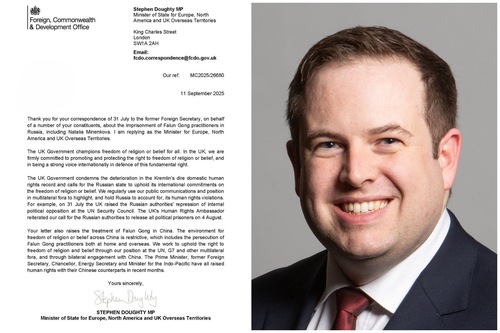 सांसद स्टीफन डौटी ने अपने पत्र में कहा, "ब्रिटेन सरकार सभी के लिए धर्म या आस्था की स्वतंत्रता की वकालत करती है। ब्रिटेन में, हम धर्म या आस्था की स्वतंत्रता के अधिकार को बढ़ावा देने और उसकी रक्षा करने, और इस मौलिक अधिकार की रक्षा के लिए अंतरराष्ट्रीय स्तर पर एक मज़बूत आवाज़ बनने के लिए पूरी तरह प्रतिबद्ध हैं।"