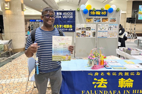 (Minghui.org) फालुन दाफा अभ्यासियों ने 4 अक्टूबर, 2025 को हिरोशिमा में 41वें शांति प्रेम आदान-प्रदान महोत्सव में भाग लिया। स्थानीय लोगों और आगंतुकों ने फालुन दाफा अभ्यास के लाभों और चीनी कम्युनिस्ट पार्टी (सीसीपी) द्वारा इस आध्यात्मिक अनुशासन के उत्पीड़न के बारे में जाना।