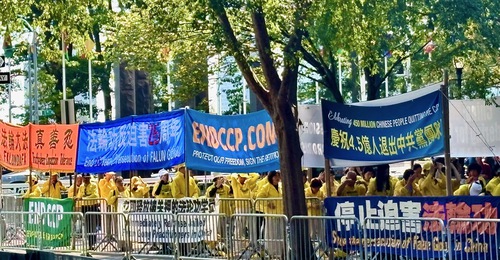 फालुन गोंग अभ्यासियों ने लोगों को उत्पीड़न के बारे में बताने के अपने प्रयास के तहत मैनहट्टन के 2nd एवेन्यू और 52nd स्ट्रीट पर बैनर भी लगाए। उन्होंने बताया कि राष्ट्रपति ट्रम्प का काफिला वहाँ से गुज़रा और उन्होंने बैनर देखे जिन पर लिखा था: "फालुन दाफा अच्छा है," और "साम्यवाद एक दानवी विचारधारा है जो मानवता का विनाश करना चाहती है।" उन्होंने राष्ट्रपति ट्रम्प को मुस्कुराते हुए अभ्यासियों की ओर हाथ हिलाते देखा, उन्होने भी हाथ हिलाया।