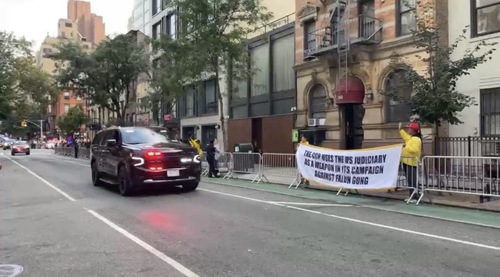 राष्ट्रपति ट्रंप और उनके साथियों ने संयुक्त राष्ट्र मुख्यालय से प्रस्थान करते समय कुछ समर्थकों को बैनर लिए हुए देखा। राष्ट्रपति ने समर्थकों की ओर हाथ हिलाकर अभिवादन किया।