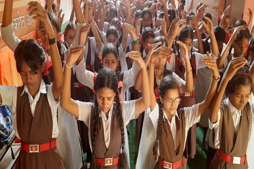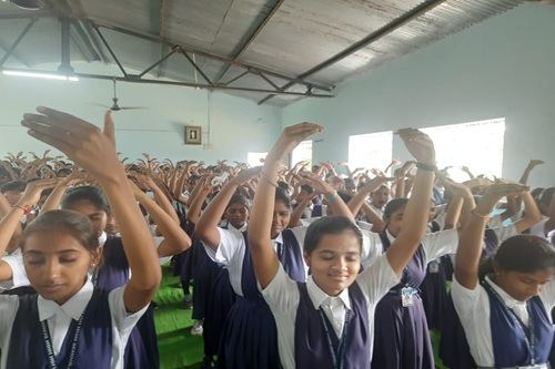 श्रीमती दादीबाई देशमुख हिंदू गर्ल्स स्कूल में छात्र ध्यान करते हैं।