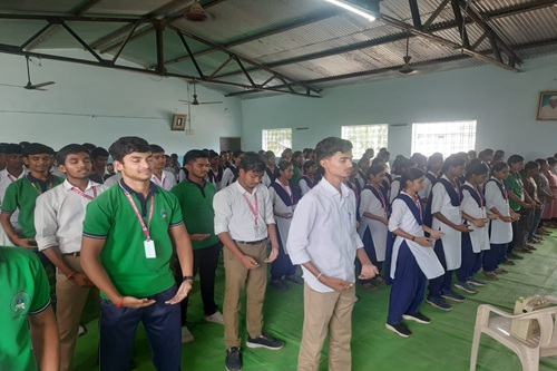 नूतन सरस्वती हाई स्कूल के छात्र ध्यान करते हुए।