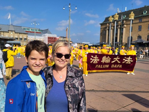 रोमानिया की एंड्रिया 30 साल से स्वीडन में रह रही हैं। उन्होंने इन प्रदर्शनों की वीडियो रिकॉर्डिंग की और अपने बेटे को अभ्यासियों के लिए ताली बजाने को कहा। वे फालुन दाफा के मूल्यों का समर्थन करती हैं।