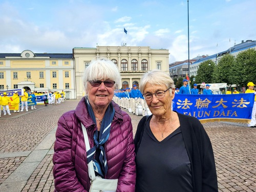 80 वर्षीय लोट्टा और 76 वर्षीय क्रिस्टेल, दोनों गोथेनबर्ग में रहती हैं। क्रिस्टेल ने बताया कि वह दो साल से फालुन दाफा का अभ्यास कर रही हैं। उन्होंने फालुन दाफा की मुख्य पुस्तक "ज़ुआन फालुन" दो बार पढ़ी है और कहा कि इस अभ्यास ने उन्हें स्वस्थ रखा है और यह पुस्तक बार-बार पढ़ने लायक है।