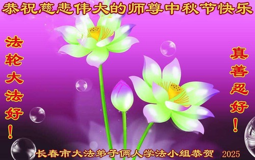 चांगचुन शहर के फालुन दाफा अभ्यासी मास्टर ली होंगज़ी को मध्य-शरद उत्सव की हार्दिक शुभकामनाएँ देते हैं (19 शुभकामनाएँ)