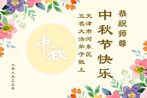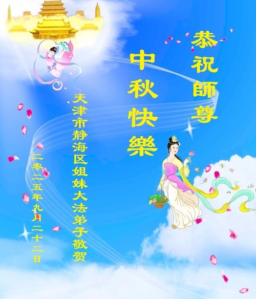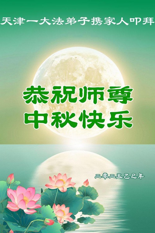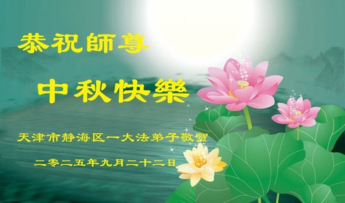 तियानजिन के फालुन दाफा अभ्यासी मास्टर ली होंगज़ी को मध्य-शरद उत्सव की हार्दिक शुभकामनाएँ देते हैं (18 शुभकामनाएँ)
