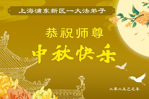 शंघाई के फालुन दाफा अभ्यासी मास्टर ली होंगज़ी को मध्य-शरद उत्सव की हार्दिक शुभकामनाएँ देते हैं (18 शुभकामनाएँ)