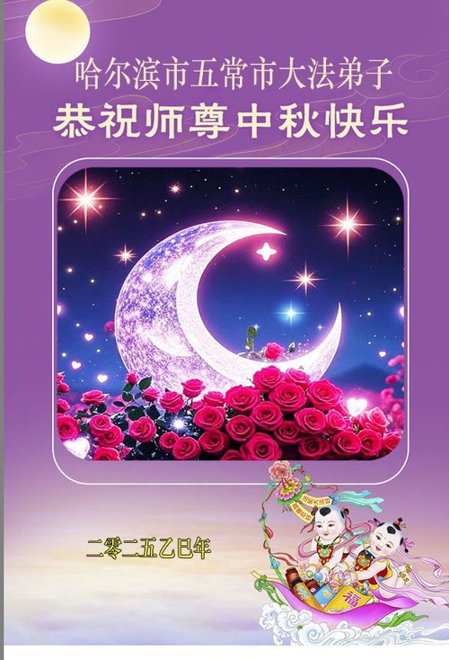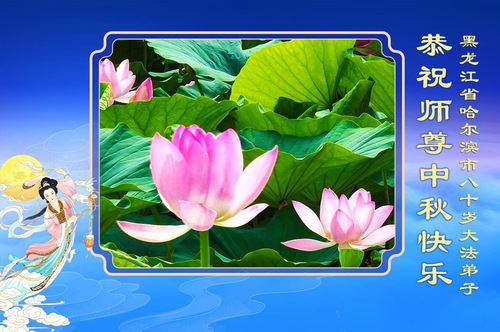 हार्बिन शहर के फालुन दाफा अभ्यासी मास्टर ली होंगज़ी को मध्य-शरद उत्सव की हार्दिक शुभकामनाएँ देते हैं (20 शुभकामनाएँ)