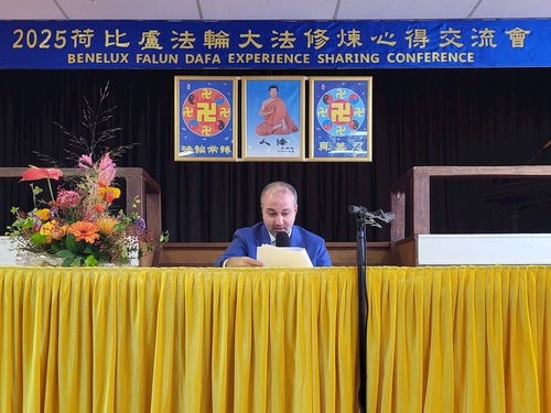 फालुन दाफा एसोसिएशन के एक प्रतिनिधि ने सम्मेलन में उपस्थित लोगों से कहा: "नीदरलैंड और बेल्जियम के अभ्यासियों को इस पवित्र फा सम्मेलन का आनंद लेना चाहिए, एक-दूसरे की साधना साझा करने की बातें सुननी चाहिए, देखना चाहिए कि हम एक-दूसरे की तुलना में शिक्षाओं और साधना के अध्ययन में कैसे प्रगति कर रहे हैं, और फा-सुधार अवधि के अंतिम चरण में एक साथ सुधार करना चाहिए।"