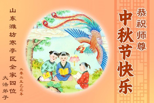 वेफ़ांग शहर के फालुन दाफा अभ्यासी मास्टर ली होंगज़ी को मध्य-शरद उत्सव की हार्दिक शुभकामनाएँ देते हैं (18 शुभकामनाएँ)