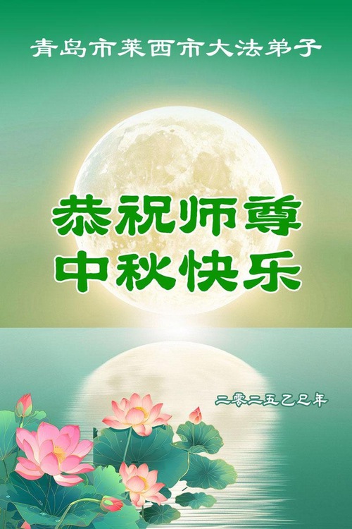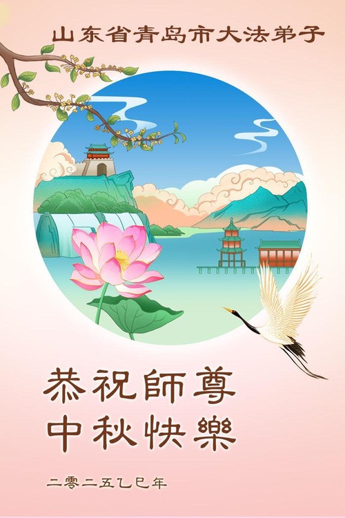 क़िंगदाओ शहर के फालुन दाफा अभ्यासी मास्टर ली होंगज़ी को मध्य-शरद उत्सव की हार्दिक शुभकामनाएँ देते हैं (18 शुभकामनाएँ)