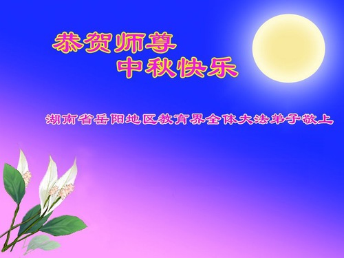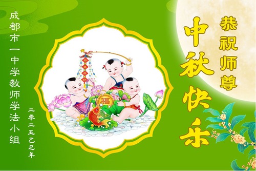 (Minghui.org) मध्य शरद ऋतु महोत्सव (जिसे चंद्र महोत्सव भी कहा जाता है) मनाने के लिए, फालुन दाफा अभ्यासी फालुन दाफा के संस्थापक मास्टर ली होंगज़ी को अपनी शुभकामनाएँ भेज रहे हैं।