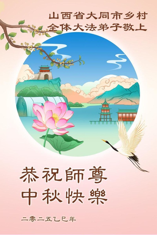 (Minghui.org) 2025 मध्य-शरद उत्सव (6 अक्टूबर) के अवसर पर, फालुन दाफा अभ्यासियों ने फालुन दाफा के संस्थापक मास्टर ली होंगज़ी को शुभ त्योहार की शुभकामनाएँ भेजी हैं।