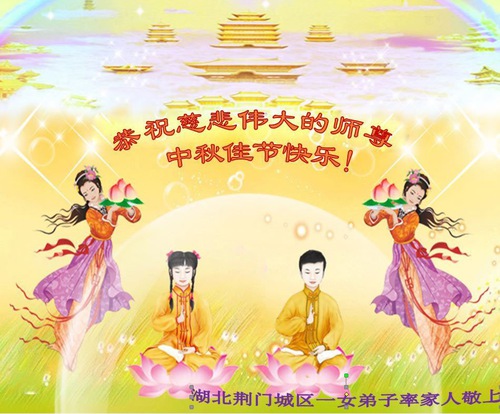 हुबेई प्रांत के फालुन दाफा अभ्यासी मास्टर ली होंगज़ी को मध्य-शरद उत्सव की हार्दिक शुभकामनाएं देते हैं (18 शुभकामनाएँ)