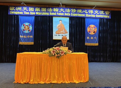 बैंड के दो सदस्य सम्मेलन के मुख्य अतिथि थे। अपने उद्घाटन भाषण में, उन्होंने कहा, "तियान गुओ मार्चिंग बैंड के सदस्यों के रूप में, हम फ़ा को प्रमाणित करते हैं और संगीत के माध्यम से जीवों का उद्धार करते हैं। इस प्रक्रिया में हम निरंतर स्व -साधना करते हैं, आसक्तियों को त्यागते हैं, अपने चरित्र का विकास करते हैं, एक साथ काम करते हैं, और एक शरीर बनाते हैं।"