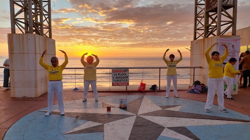 तिजुआना के सबसे पुराने सार्वजनिक पार्कों में से एक, टेनिएंटे ग्युरेरो पार्क में सुबह से ही व्यायाम अभ्यास शुरू हो गया। अभ्यासियों ने फालुन दाफा अभ्यासों का प्रदर्शन किया और स्थानीय लोगों को चीनी कम्युनिस्ट पार्टी द्वारा अभ्यासियों पर जारी अत्याचारों के बारे में बताया।