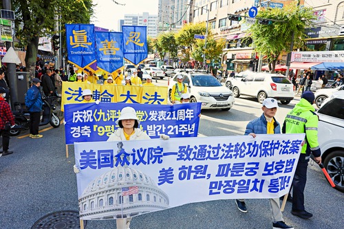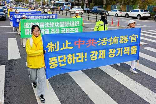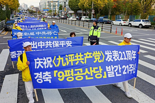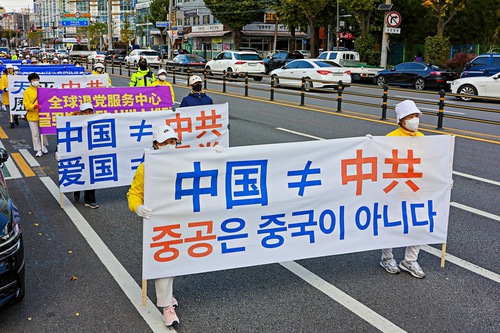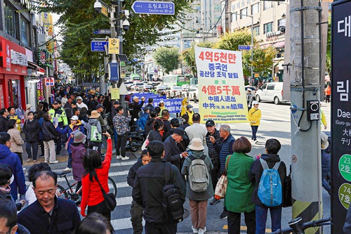 (Minghui.org) दक्षिण कोरियाई फालुन दाफा एसोसिएशन ने 2 नवंबर, 2025 को दक्षिण कोरिया के सियोल में सबसे बड़े चीनी समुदाय, गुरो-डोंग और डेरीम-डोंग में एक परेड का आयोजन किया। उन्होंने उन 450 मिलियन चीनी लोगों का जश्न मनाया, जिन्होंने चीनी कम्युनिस्ट पार्टी (सीसीपी) और उससे संबद्ध संगठनों को छोड़ दिया है।