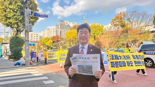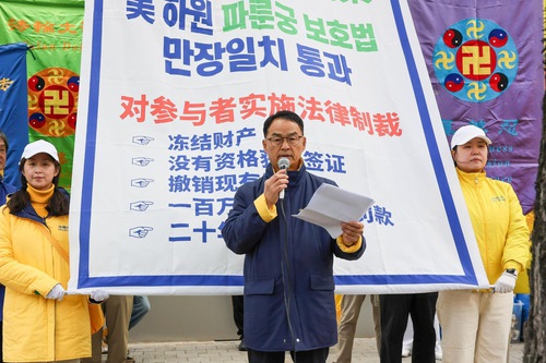 दक्षिण कोरियाई फालुन दाफा एसोसिएशन के महासचिव डॉ. वू सिली ने परेड से पहले एक बयान पढ़ा।