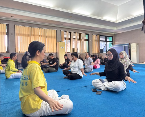 शुक्रवार, 31 अक्टूबर, 2025 को, अभ्यासियों को पश्चिमी जकार्ता के केम्बांगन उपजिला कार्यालय के कर्मचारियों को फालुन दाफा से परिचित कराने के लिए आमंत्रित किया गया था। यह कार्यक्रम सुबह 7:30 से 9:30 बजे तक चला। इसकी शुरुआत अभ्यासियों द्वारा फालुन दाफा के बारे में जानकारी देने, इसका इतिहास साझा करने और फालुन दाफा का अभ्यास शुरू करने से पहले के अपने व्यक्तिगत अनुभवों को साझा करने से हुई।