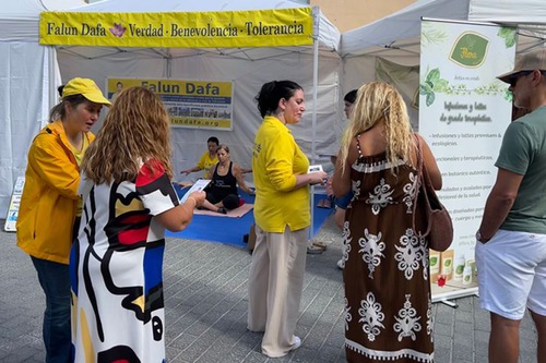 (Minghui.org) स्पेन के मल्लोर्का द्वीप के एक कस्बे इंका के एक बाज़ार में, 18 से 19 अक्टूबर, 2025 तक, अभ्यासियों ने लोगों को फालुन दाफा से परिचित कराया। कई निवासियों और पर्यटकों ने फालुन दाफा अभ्यास के लाभों को जाना और कुछ ने अभ्यास सीखना शुरू कर दिया। लोगों ने फालुन दाफा की मुख्य पुस्तक "ज़ुआन फालुन" की प्रतियाँ खरीदीं और अभ्यास सीखने में रुचि दिखाई।