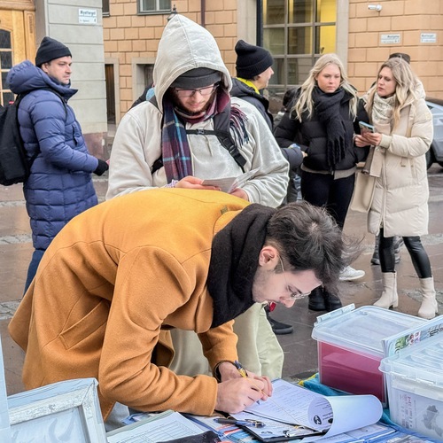 (Minghui.org) फालुन दाफा अभ्यासियों ने नवंबर 2025 में शुक्रवार और शनिवार को स्वीडिश संसद भवन के पास मिंटटॉर्गेट पर गतिविधियाँ आयोजित कीं।