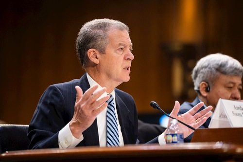 राजदूत सैम ब्राउनबैक ने सुनवाई को संबोधित किया।