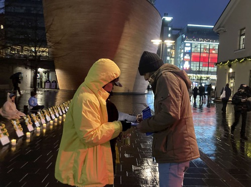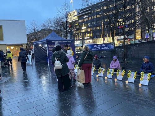 हेलसिंकी में मोमबत्ती जलाकर आयोजित एक श्रद्धांजलि सभा में स्थानीय निवासियों और पर्यटकों ने फालुन दाफा के प्रति अपना समर्थन व्यक्त किया।