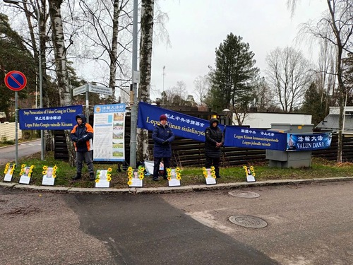 मानवाधिकार दिवस के उपलक्ष्य में, फिनलैंड में फालुन दाफा के अभ्यासियों ने 4 दिसंबर, 2025 को हेलसिंकी में चीनी दूतावास के सामने चीनी कम्युनिस्ट पार्टी (सीसीपी) द्वारा उनके आध्यात्मिक साधना पर किए जा रहे 26 वर्षों के उत्पीड़न की निंदा करते हुए विरोध प्रदर्शन किया। उन्होंने 10 दिसंबर को हेलसिंकी के कम्पी में मोमबत्ती जलाकर उन साथी अभ्यासियों को श्रद्धांजलि अर्पित की, जो उत्पीड़न में मारे गए और फिनलैंड के लोगों से आग्रह किया कि वे सीसीपी द्वारा राजनीतिक कैदियों के जबरन अंग प्रत्यारोपण पर ध्यान दें और इसे रोकने में मदद करें।