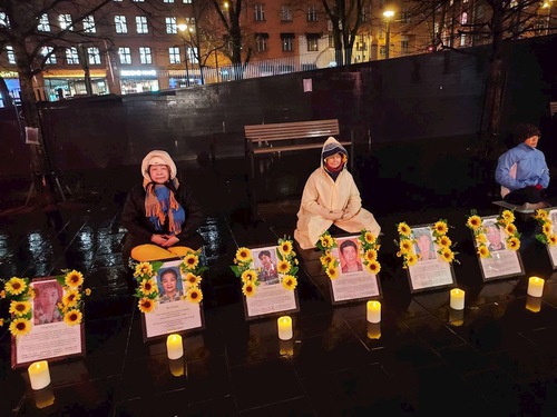 चौक पर उन अभ्यासियों के चित्र प्रदर्शित किए गए थे जिनकी मृत्यु चीनी कम्युनिस्ट पार्टी के अत्याचारों के परिणामस्वरूप हुई थी। इनमें से कुछ फिनलैंड में रहने वाले अभ्यासियों के रिश्तेदार थे। चित्रों के सामने मोमबत्तियाँ जलाई गईं और अभ्यासियों ने मौन रूप से अपने उन साथी अभ्यासियों को याद किया जिन्हें अत्याचारों के कारण मृत्यु का सामना करना पड़ा। कई राहगीर भावुक हो गए और कार्यक्रम के बारे में जानने और याचिका पर हस्ताक्षर करने के लिए रुक गए। दो घंटे बाद बारिश शुरू हो गई। कुछ अभ्यासी बारिश में भी बैठे रहे और लोगों की सहानुभूति और सम्मान प्राप्त किया।