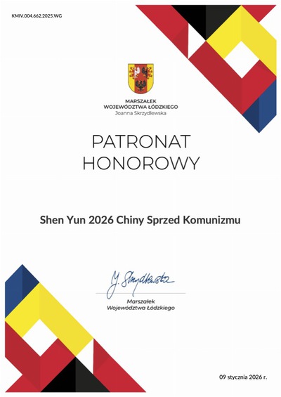 लॉड्ज़ प्रांत की मार्शल (गवर्नर) जोआना स्करज़ीडलेव्स्का द्वारा मानद संरक्षण (जोआना स्करज़ीडलेव्स्का के कार्यालय द्वारा प्रदान किया गया)