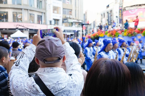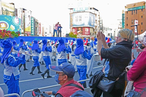कार्यक्रम संचालक ने बैंड का परिचय देते हुए कहा: “तियान गुओ मार्चिंग बैंड का प्रदर्शन शानदार और भव्य है। सत्य, करुणा और सहनशीलता के सिद्धांतों से प्रेरित यह अनुशासित दल शुद्ध, उज्ज्वल और ऊर्जा से भरपूर संगीत प्रस्तुत करता है, और फालुन दाफा की सुंदरता को दुनिया के साथ साझा करता है।” सड़क के दोनों ओर खड़े दर्शकों ने बैंड के गुजरते ही उत्साहपूर्वक हाथ हिलाकर उनका स्वागत किया।