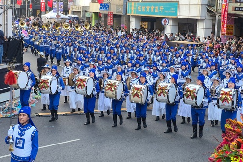 तियान गुओ मार्चिंग बैंड में तीन पीढ़ियों - बुजुर्ग, मध्यम आयु वर्ग और युवा - के 200 से अधिक फालुन दाफा अनुयायी शामिल हैं, जिनमें जापान के अनुयायी भी थे। बैंड ने मध्य चियाई के फाउंटेन सर्कल से कानो पार्क तक लगभग 3 किलोमीटर (लगभग 2 मील) लंबे जुलूस मार्ग पर झोंगशान रोड के साथ मार्च किया, जिस पर उनका जोरदार स्वागत किया गया। बैंड ने "फालुन दाफा महान है" सहित कई गीत प्रस्तुत किए, जिसमें उन्होंने अपने पवित्र और शुद्ध संगीत को तालमेलपूर्ण कदमों के साथ मिलाकर फालुन दाफा की सुंदरता को उत्सव में उपस्थित लोगों के साथ साझा किया।