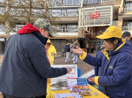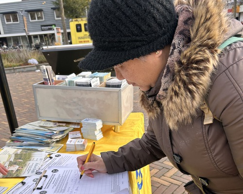 एक व्यक्ति ने डिस्प्ले बोर्ड पढ़कर कहा कि चीनी कम्युनिस्ट पार्टी आस्था की स्वतंत्रता नहीं देती, फालुन गोंग अनुयायियों पर क्रूरतापूर्वक अत्याचार करती है और यह एक क्रूर शासन है। उसने पूछा कि वह मदद के लिए क्या कर सकता है, और याचिका पर हस्ताक्षर कर दिए।
