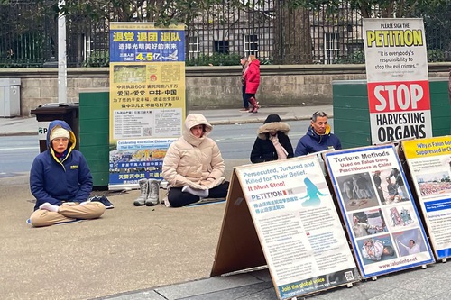अभ्यासियों ने चीन में हो रहे उत्पीड़न के बारे में जागरूकता बढ़ाने के लिए डबलिन के शहर के केंद्र में सूचना बूथ स्थापित किए।