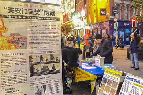 डबलिन शहर के केंद्र में स्थित फालुन दाफा सूचना केंद्रों पर चीनी नागरिक उत्पीड़न के बारे में तथ्य जान सकते हैं।