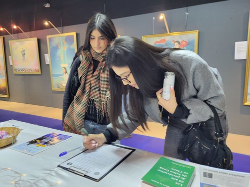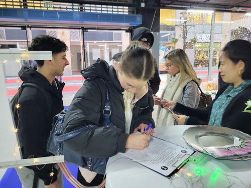 इस प्रदर्शनी ने कई युवाओं और छात्रों को आकर्षित किया, जिन्होंने चित्रों को देखा और उनके विवरण पढ़े। इसके बाद, उनमें से कई लोगों ने बीजिंग से चीन में फालुन गोंग के खिलाफ जारी उत्पीड़न को समाप्त करने की मांग वाली याचिका पर हस्ताक्षर किए।