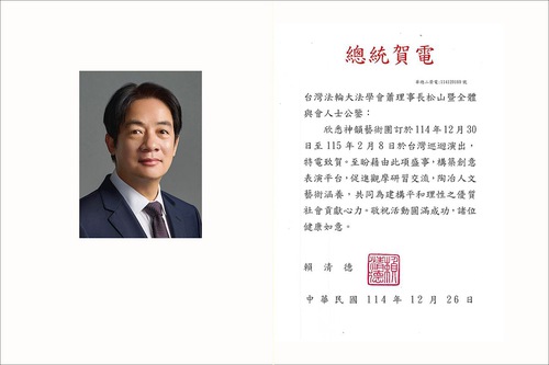 अपने संदेश में राष्ट्रपति लाई ने कहा कि उन्हें यह जानकर खुशी हुई कि शेन युन 30 दिसंबर, 2025 से 8 फरवरी, 2026 तक ताइवान का दौरा करेगा, और उन्होंने आशा व्यक्त की कि "यह प्रमुख सांस्कृतिक आयोजन एक रचनात्मक प्रदर्शन मंच बनाने, कलात्मक आदान-प्रदान और सीखने को बढ़ावा देने, मानवीय और कलात्मक विकास को समृद्ध करने और एक शांतिपूर्ण और तर्कसंगत समाज के विकास में योगदान करने में मदद करेगा।"