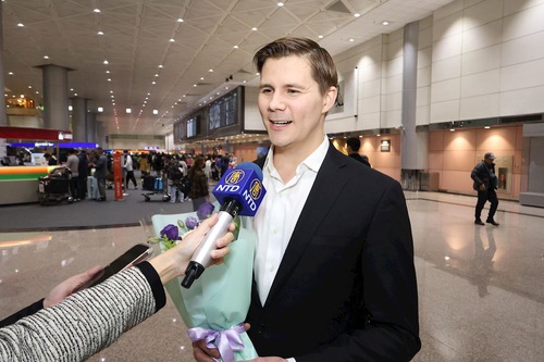 शेन युन के कलाकारों का हवाई अड्डे पर प्रशंसकों की भारी भीड़ ने स्वागत किया।