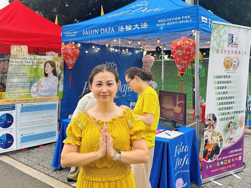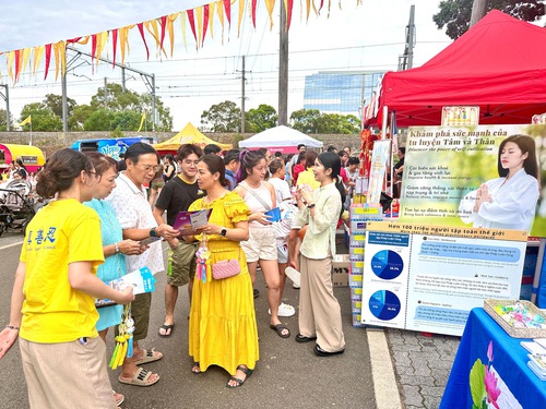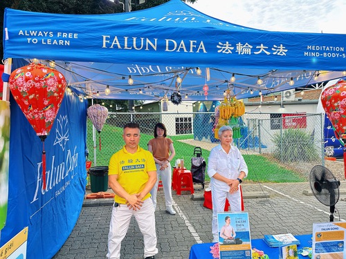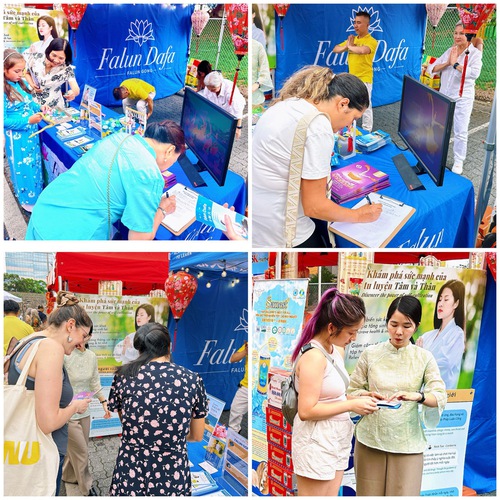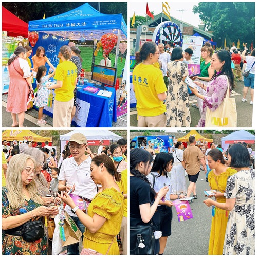 इस आयोजन में अभ्यासी लोगों को फालुन दाफा के बारे में बताते हैं