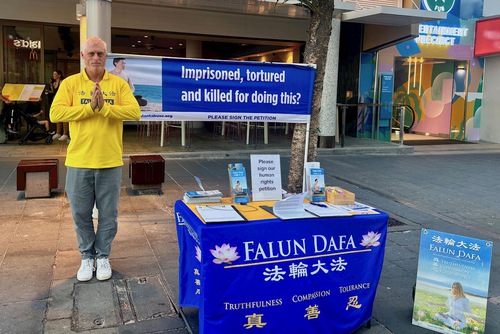 जेसन नियमित रूप से सर्फर्स पैराडाइज के पास हो रहे उत्पीड़न के बारे में सच्चाई उजागर करते हैं, जो समुद्र तट और समुद्री बाज़ार से कुछ ही कदम दूर है। सर्फर्स पैराडाइज एक लोकप्रिय पर्यटन स्थल है और स्थानीय लोगों के साथ-साथ दुनिया भर से आने वाले पर्यटकों को भी आकर्षित करता है। कई लोग फालुन दाफा के बारे में रंगीन बैनर पढ़ने और अभ्यासियों द्वारा किए जा रहे अभ्यासों को देखने के लिए रुकते हैं। वे चीन में फालुन दाफा के उत्पीड़न के बारे में जानकारी प्राप्त करते हैं और उत्पीड़न को समाप्त करने में मदद के लिए याचिकाओं पर हस्ताक्षर करते हैं।