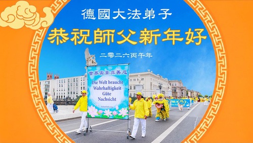 (Minghui.org) जर्मनी में फालुन दाफा के अभ्यासियों ने मास्टर ली को हार्दिक धन्यवाद दिया और उन्हें चीनी नव वर्ष की हार्दिक शुभकामनाएं दीं। उन्होंने कहा कि वे फालुन दाफा का अभ्यास करने को अपना सौभाग्य मानते हैं और मास्टरजी के प्रति अपनी कृतज्ञता को शब्दों में पूरी तरह व्यक्त नहीं कर सकते। वे लगन से साधना करेंगे, तीनों कार्यों को भली-भांति करेंगे, आसक्तियों को त्यागेंगे और मास्टरजी को फ़ा को सुधारने और सभी जीवों के उद्धार में सहयोग करेंगे।