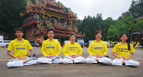 फोटो: श्रीमती यान (दाएं से दूसरी) अपने परिवार के साथ फालुन गोंग का अभ्यास कर रही हैं।