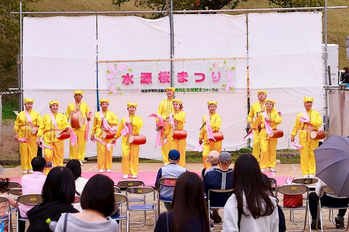 (Minghui.org) आइची प्रांत के अभ्यासियों ने 4–5 अप्रैल 2026 को टोयोटा शहर में आयोजित 32वें सुइगेन चेरी ब्लॉसम फेस्टिवल में भाग लिया। अभ्यासों का प्रदर्शन करने के अलावा, अभ्यासियों ने कमर पर बाँधकर बजाए जाने वाले ढोल (वेस्ट ड्रम) का प्रदर्शन भी किया और स्थानीय निवासियों तथा पर्यटकों को इस साधना से परिचित कराने के लिए जानकारी वितरित की।
