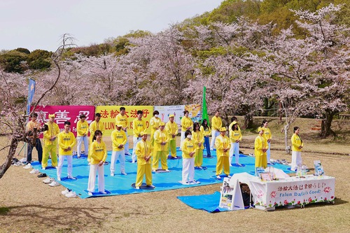 यह कार्यक्रम सुइजेन पार्क में हुआ, जो साल के इस समय अपने चेरी ब्लॉसम के लिए प्रसिद्ध है। त्योहार जाने वाले कई लोग अभ्यासियों को अभ्यास करते हुए देखने के लिए रुके। उन्होंने फालुन दाफा के बारे में भी सीखा और चीन में उत्पीड़न को समाप्त करने में मदद करने के लिए याचिका पर हस्ताक्षर किए।