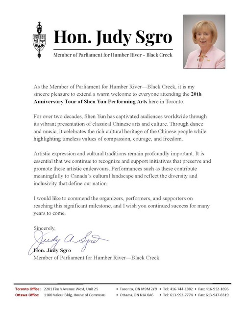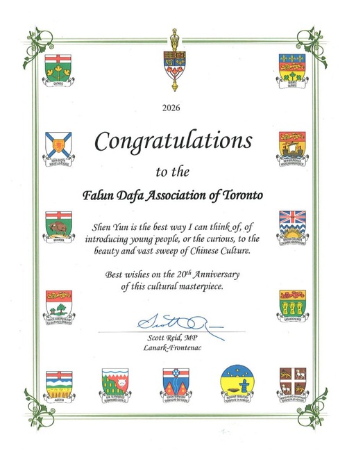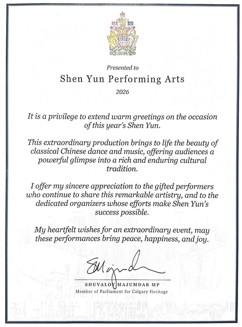 "संगीत और नृत्य के माध्यम से, शेन यून सच्चाई, करुणा और सहनशीलता जैसे स्थायी मूल्यों को जीवन में लाता है - सिद्धांत जो कनाडाई लोगों के साथ गहराई से प्रतिध्वनित होते हैं और हमारे स्वतंत्र और लोकतांत्रिक समाज की नींव को दर्शाते हैं।