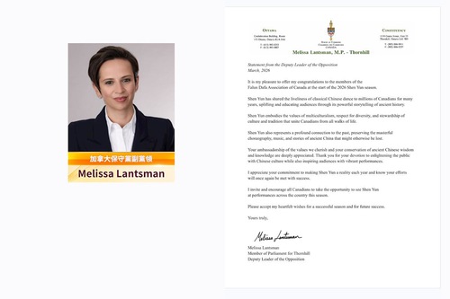 मेलिसा लैंट्समैन सांसद, विपक्ष के उपनेता ने लिखा, "शेन यून ने कई वर्षों से लाखों कनाडाई लोगों के लिए शास्त्रीय चीनी नृत्य की जीवंतता साझा की है, प्राचीन इतिहास की अपनी शक्तिशाली कहानी के माध्यम से दर्शकों को ऊपर उठाया और शिक्षित किया है।