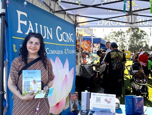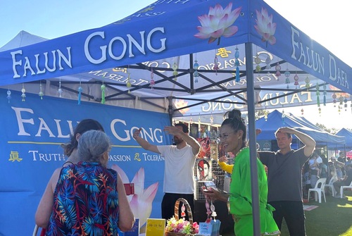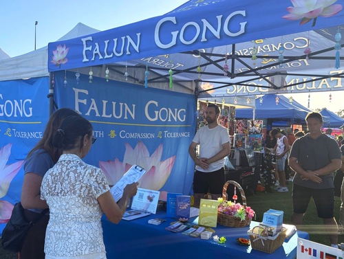 पश्चिमी ऑस्ट्रेलिया के स्वान शहर के बीचबोरो जिले में 21 मार्च को आयोजित 15वें "अल्टोन कम्स अलाइव" महोत्सव में फालुन दाफा का स्टॉल